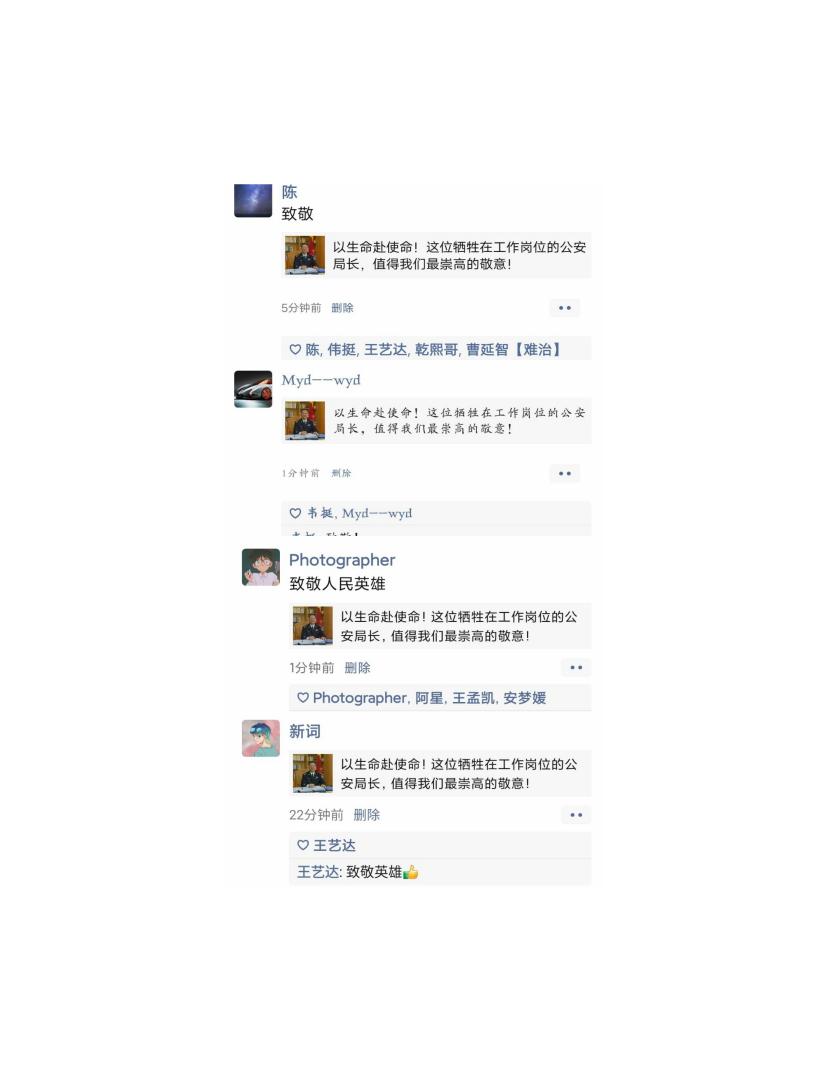 2020级汉语言文学师范二班郭伊霜:潘东升同志从警37年,将毕生的精力和心血都献给了公安事业,用责任和坚守护一方稳定,保一方平安,用生命和行动诠释了“人民公安为人民”的初心使命,是新时代共产党人的榜样。我将以他为榜样,砥砺对党忠诚、坚定纯洁的政治品格,传承勇于担当、锐意进取的敬业精神,严守克己奉公、清正廉洁的高尚情操,不忘初心,勇毅前行。