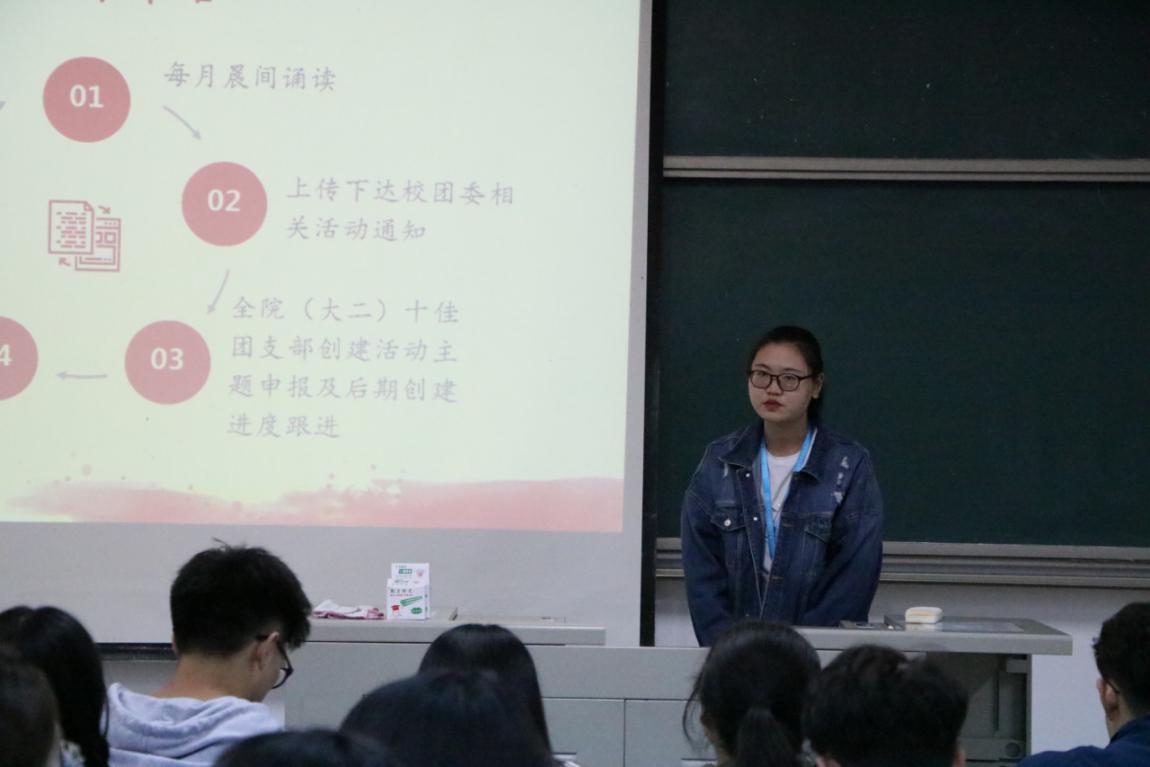 11月13日,我院在求知楼A101召开团支部大会,团委学生负责人谢继辰主持会议。