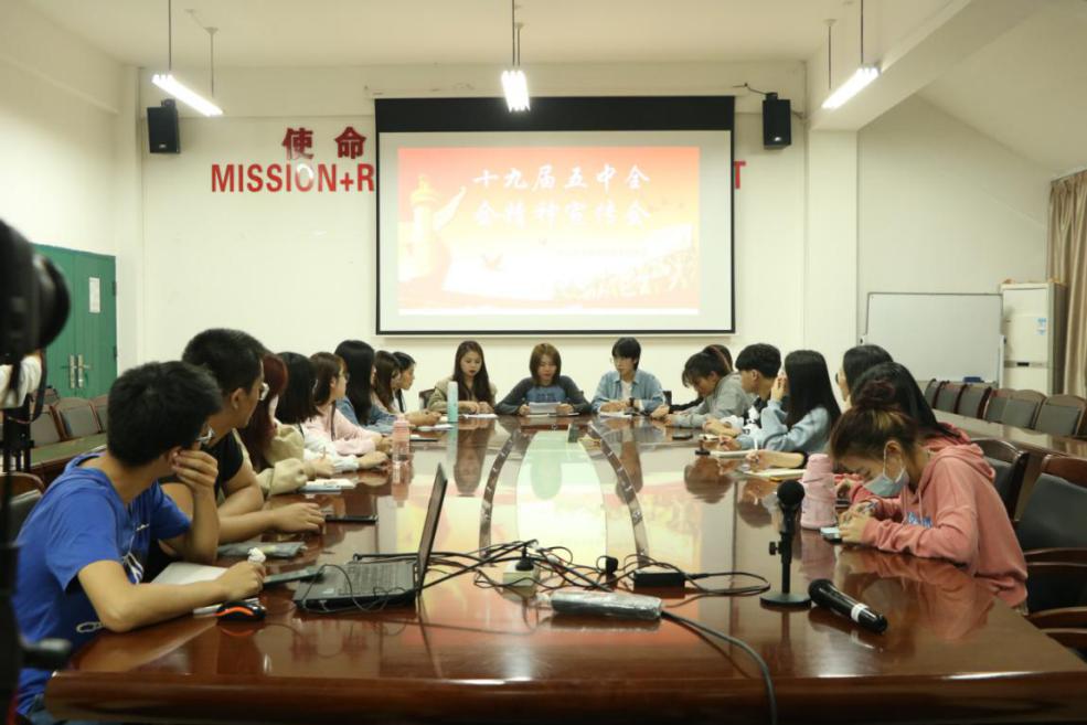 为积极推进《全省各级团组织认真学习宣传贯彻党的十九届五中全会精神》,学习和弘扬党的十九届五中全会精神,11月6日我院在求知楼AA407开展十九届五中全会精神学习会。