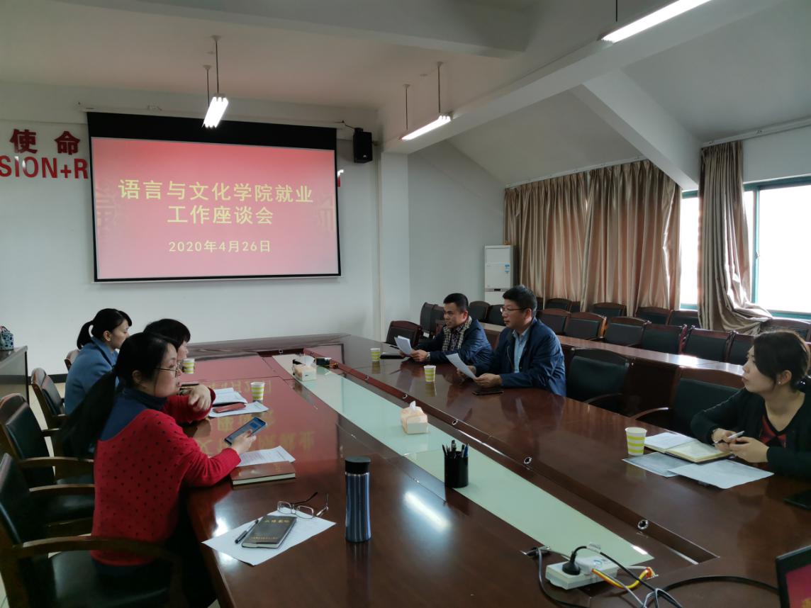 4月26日下午beats365唯一官网入口官网学生工作部(处)毛茂峰处长带领就业指导中心相关人员到我院开展2020届毕业生就业调研座谈会。会议由院党委书记张晓芳主持,陶莉副书记、全体辅导员出席会议。
