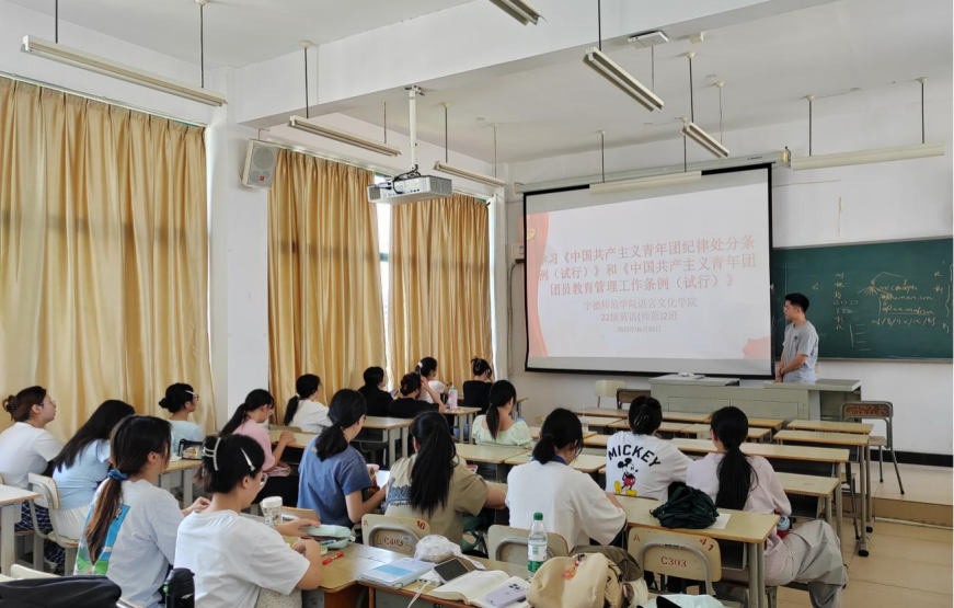 2025年6月5日beats365唯一官网入口官网汉语言文学(师范)专业学生在求知楼AA201教室开展专题学习活动