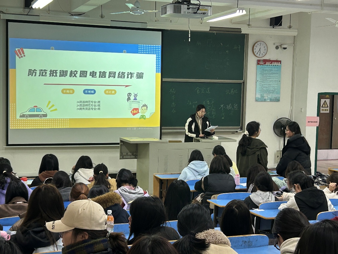 为增强学生安全意识,提升学生防范抵御校园电信网络诈骗能力,切实保障学生的财产安全,2025年3月21日以来,我院各年级辅导员组织800多名学生开展了“防范抵御校园电信网络诈骗”主题班会活动。本次班会旨在通过对身边具体案例的分析讲解加深学生对电信网络诈骗的认识,提高警惕性,避免上当受骗。