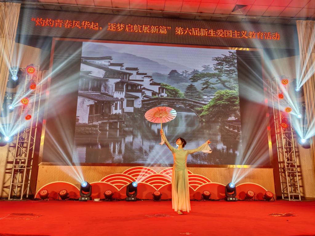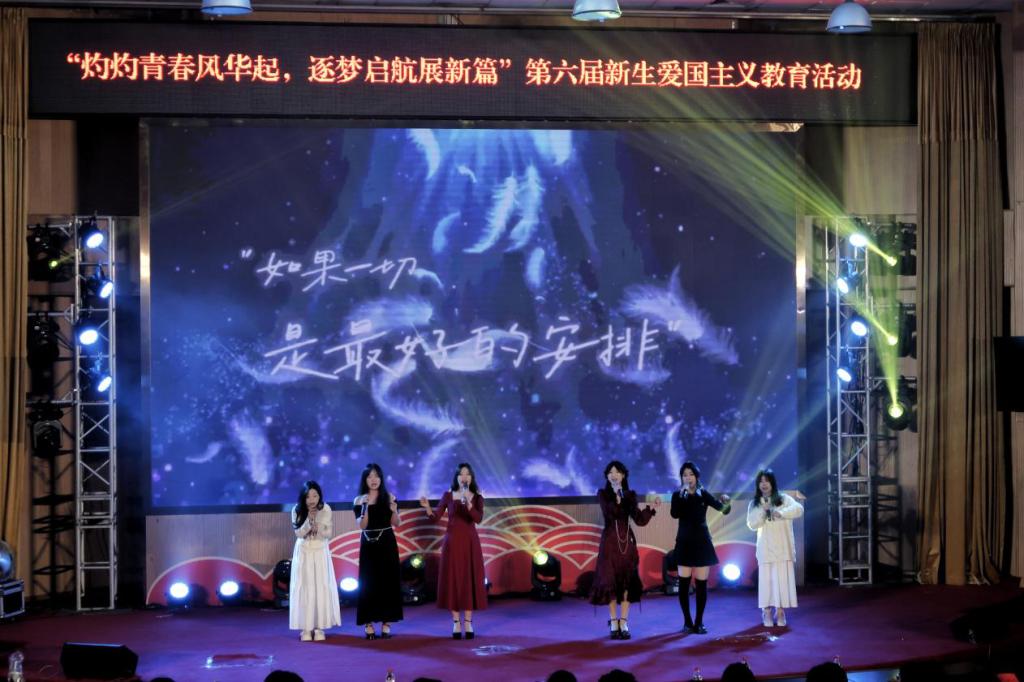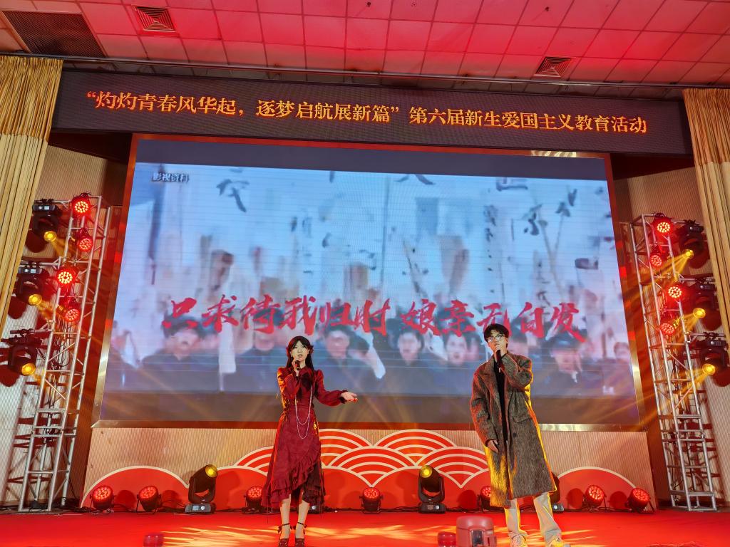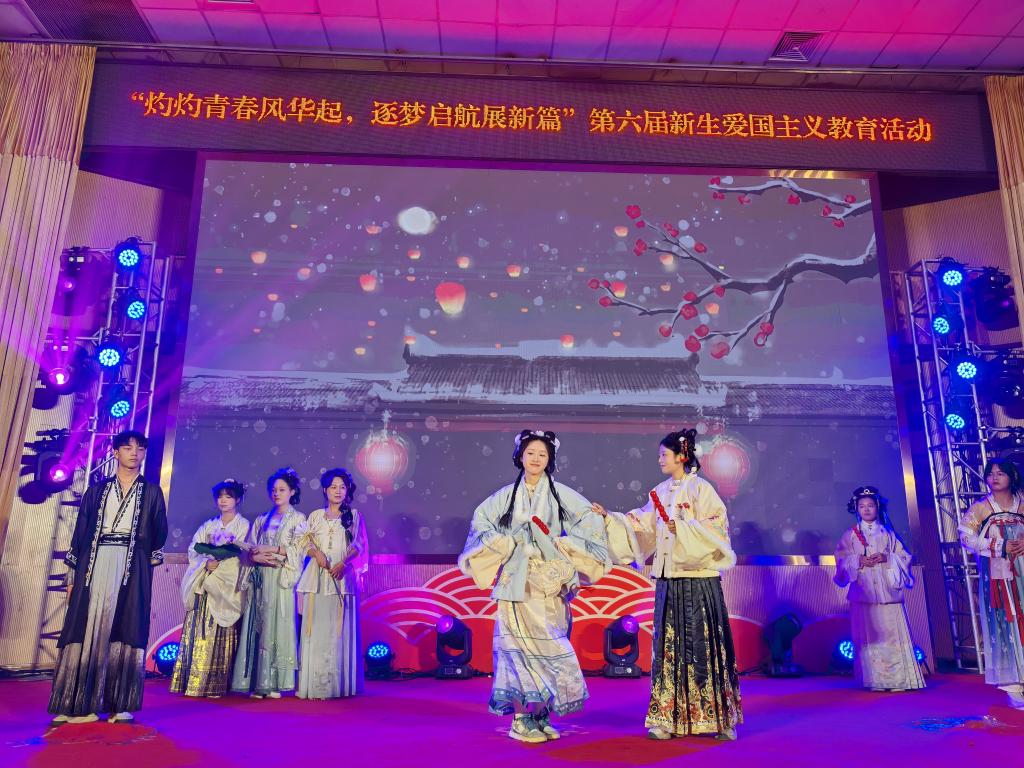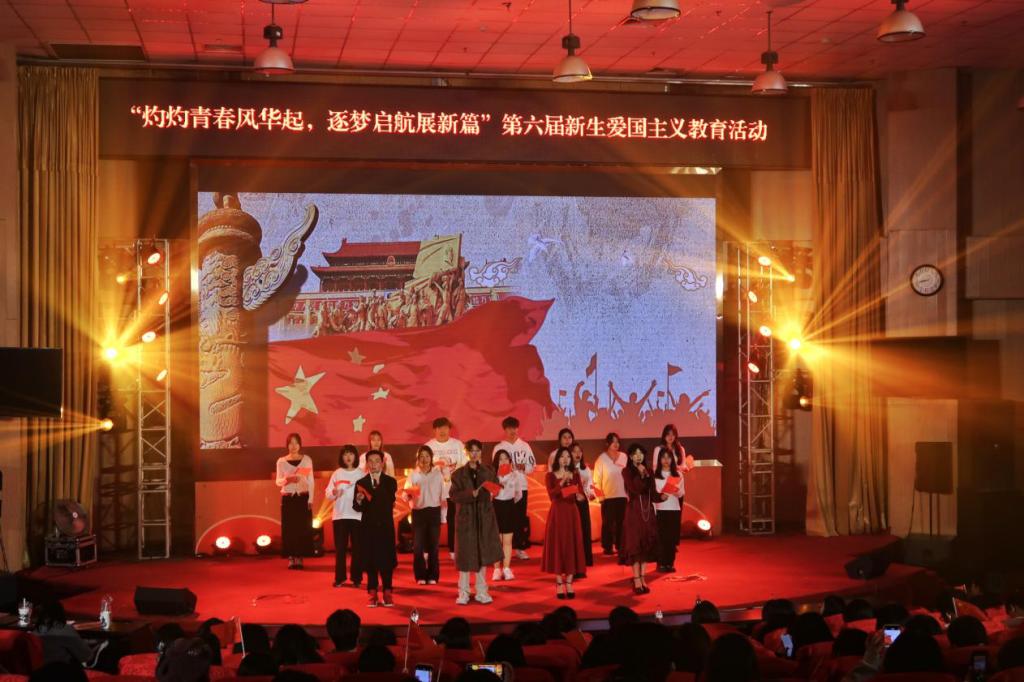 2024年12月8日,我院在图书馆报告厅举办以“灼灼青春风华起,筑梦起航展新篇”为主题的新生爱国主义教育活动。通过歌唱、舞蹈、情景剧、朗诵等多种艺术表现形式,为同学们呈现一堂生动精彩的爱国主义教育课。