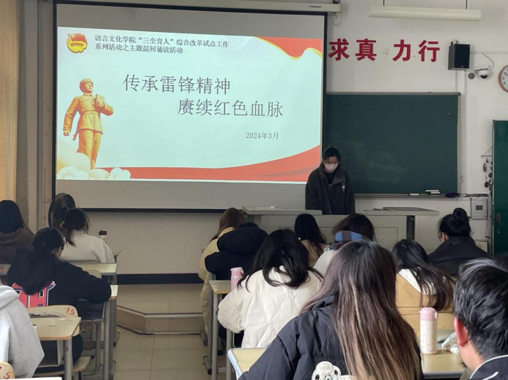 习近平总书记强调,雷锋是时代的楷模,雷锋精神是永恒的。实现中华民族伟大复兴,需要更多时代楷模。我们既要学习雷锋的精神,也要学习雷锋的做法,把崇高理想信念和道德品质追求转化为具体行动,体现在平凡的工作生活中,作出自己应有的贡献,把雷锋精神代代传承下去。“传承雷锋精神,赓续红色血脉”,这不仅仅是一句口号,更是每一位社会成员,尤其是作为新时代的青年们所应当传承的宝贵精神财富。希望我们语院的青年学子能积极用雷锋精神滋养心灵,将学雷锋活动融入日常,化为常态,身体力行继续书写新时代雷锋故事,有一分热发一分光,为实现伟大的中国梦而不懈奋斗。
