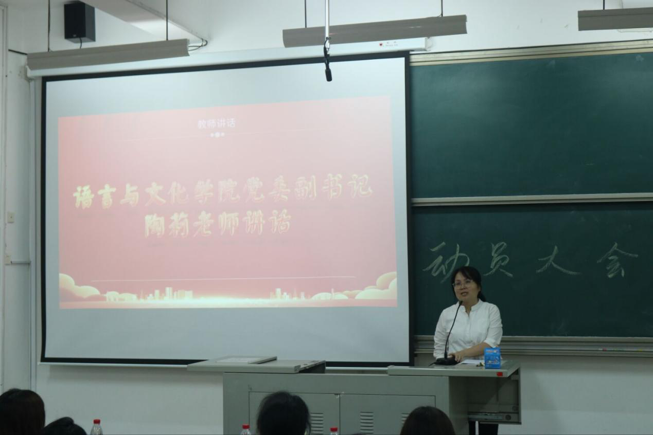 为充分调动运动员的积极性,促进运动会期间各项工作有序进行。2023年10月31日下午,语言与文化学院在求知楼a301教室举办第十四届校运会动员大会。语言与文化学院党委副书记陶莉、团委书记元佳珺、辅导员李雪、江培春、教练员和全体运动员以及语言与文化学院学生会干部代表参加本次大会。