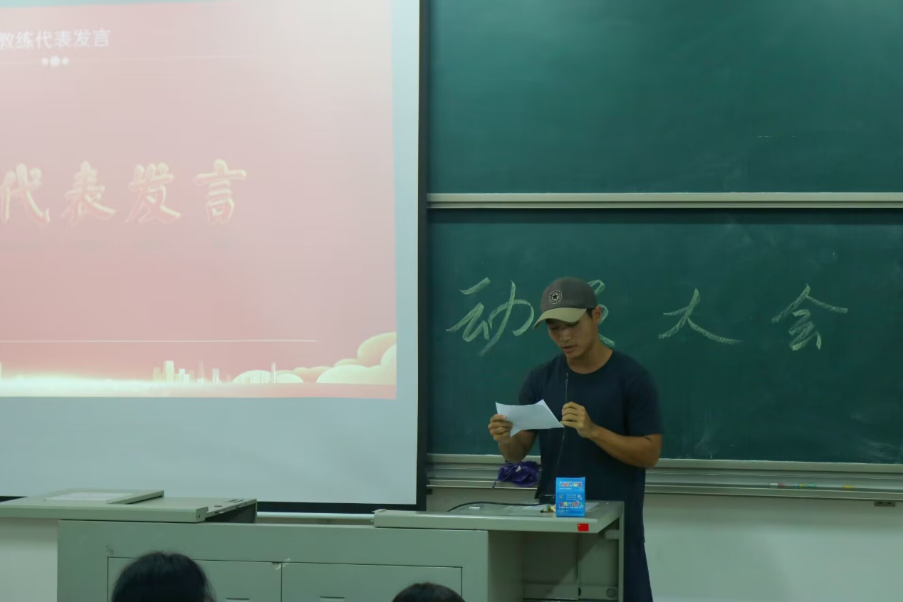 教练林照东代表全体教练员向我院领导、老师对校运会各项工作的支持表示感谢,向努力训练的运动员致敬,同时他也保证所有教练员将和运动员一起秉持着更高更强的体育精神向目标前进。