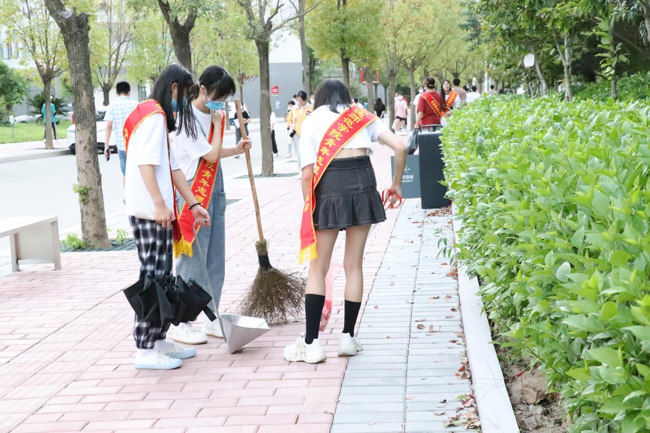为响应学校迎接国庆节,创建文明城市、文明校园的号召,我院积极组织学生开展“迎国庆,创文明”劳动教育志愿服务活动,营造良好卫生的校园环境。10月4日至7日,语言与文化学院每天招募20名志愿者在教学楼、实验楼、宿舍楼及周边草坪、道路,对落叶、纸屑和烟头进行专项卫生整治。