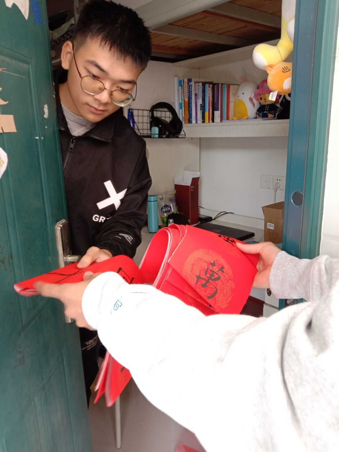为推动校园精神文明建设,营造欢乐、喜庆、祥和的新春氛围,弘扬中华优秀传统文化,12月29日上午,学生书法协会在东侨校区举行以“笔墨真情送祝福,春联迎新传翰墨”为主题的春联送宿舍活动。书协全体成员参与书写,并进行宿舍发放,共48人参加。