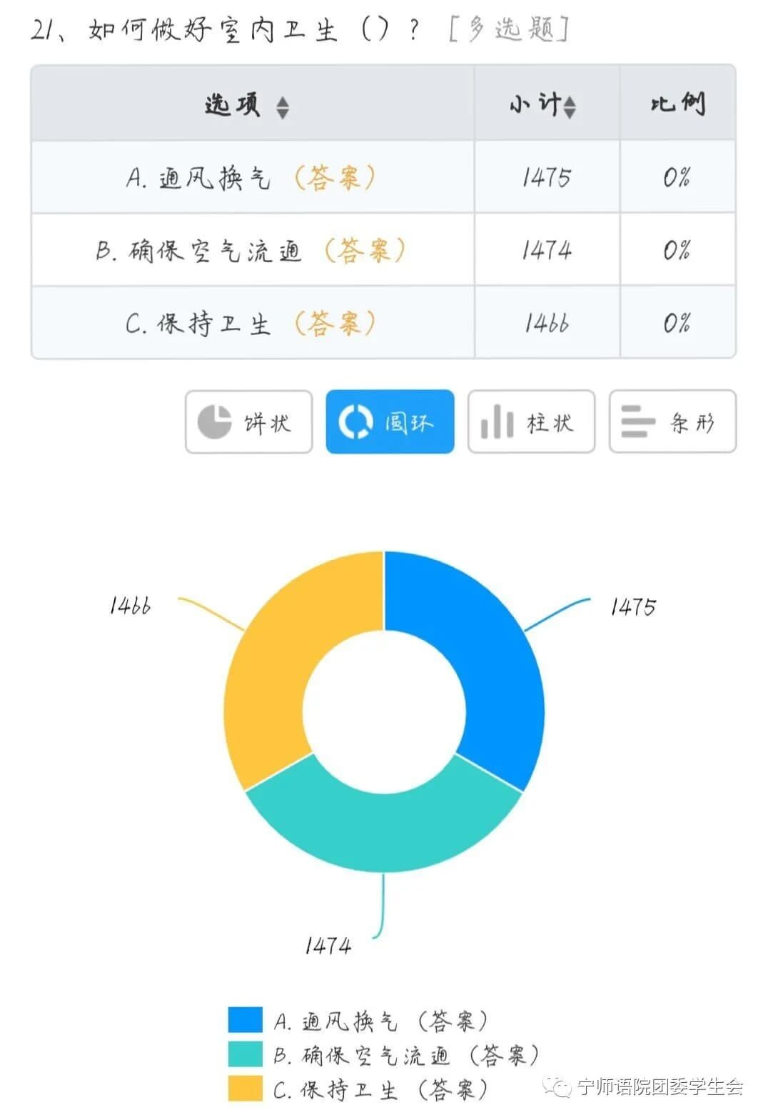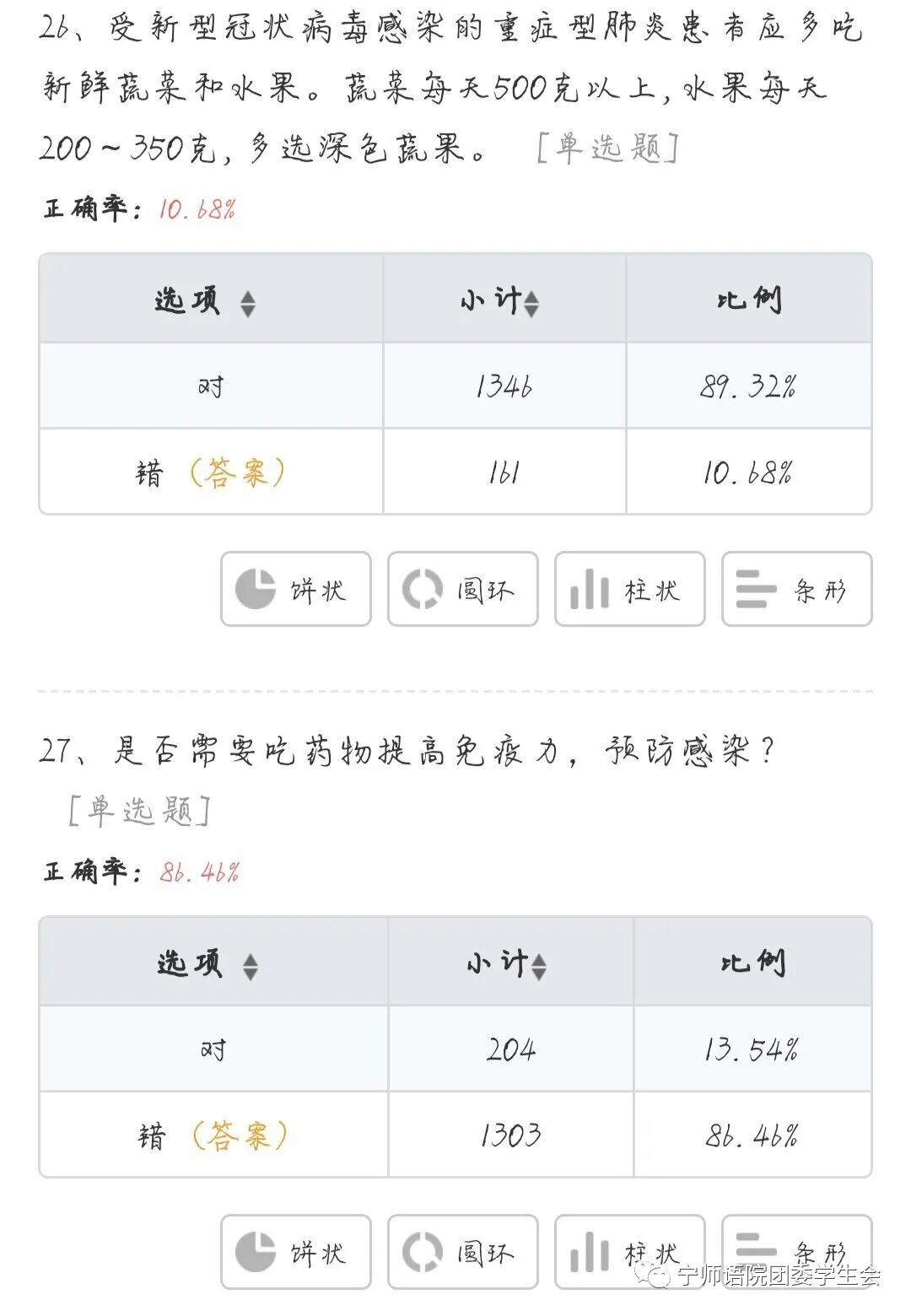 为了解我院学生防疫知识掌握的实际情况,近日我院组织全体学生开展了一次线上防疫知识问答。从数据结果反馈来看,近九成以上的同学都积极主动参与了本次活动,且取得了较好的成绩。