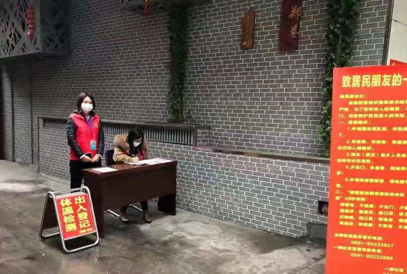 在社区居委会成员的带领下,林哲菲与其他志愿者一起在家乡福清市社区、村庄、路口等地积极宣传防疫知识,在各个疫情防控检测点排查登记来往人员、测量登记来往人员体温状况,带领居民学习科学防控知识。