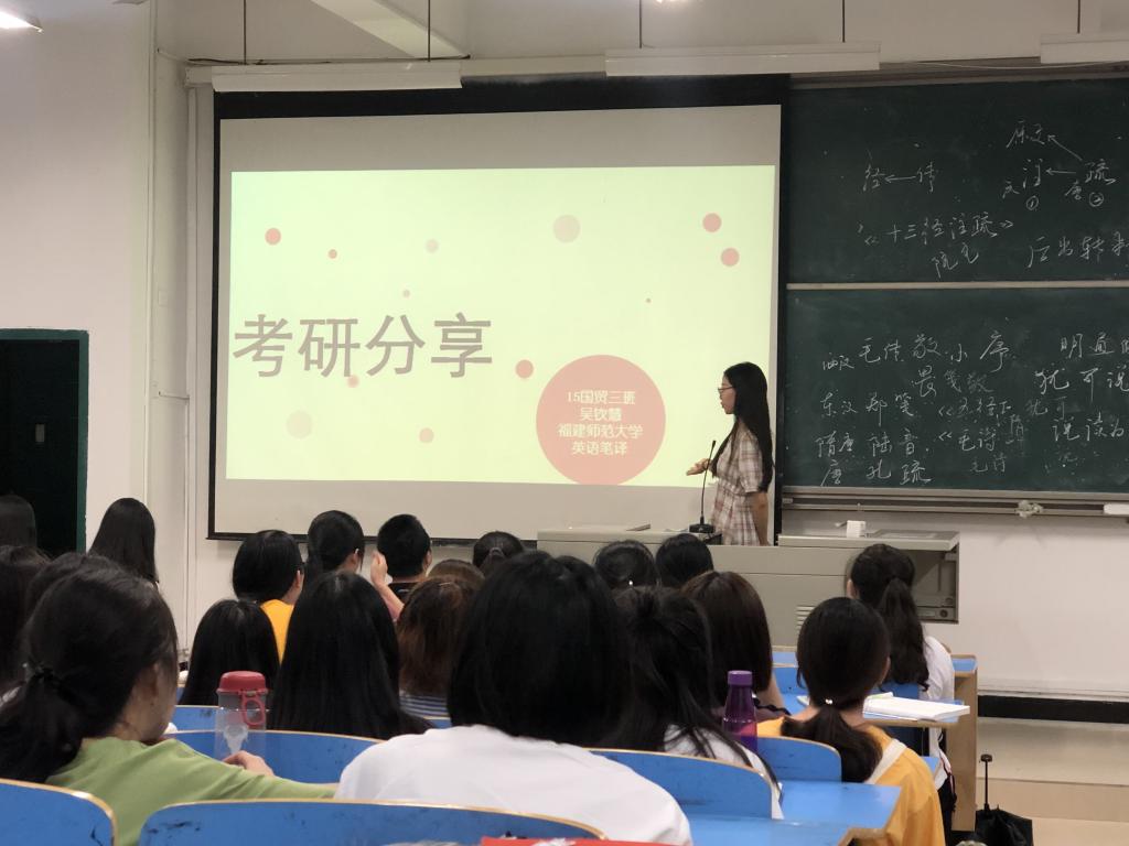 2019年6月12日晚,我院在求知楼A101举行了考研经验分享会。此次分享会邀请到了2019届考研成功的陈季红、郝佳昕、吴钦慧、王凯、林晴、吴子立、吴欢等同学进行分享,林猤老师主持本次分享会。
