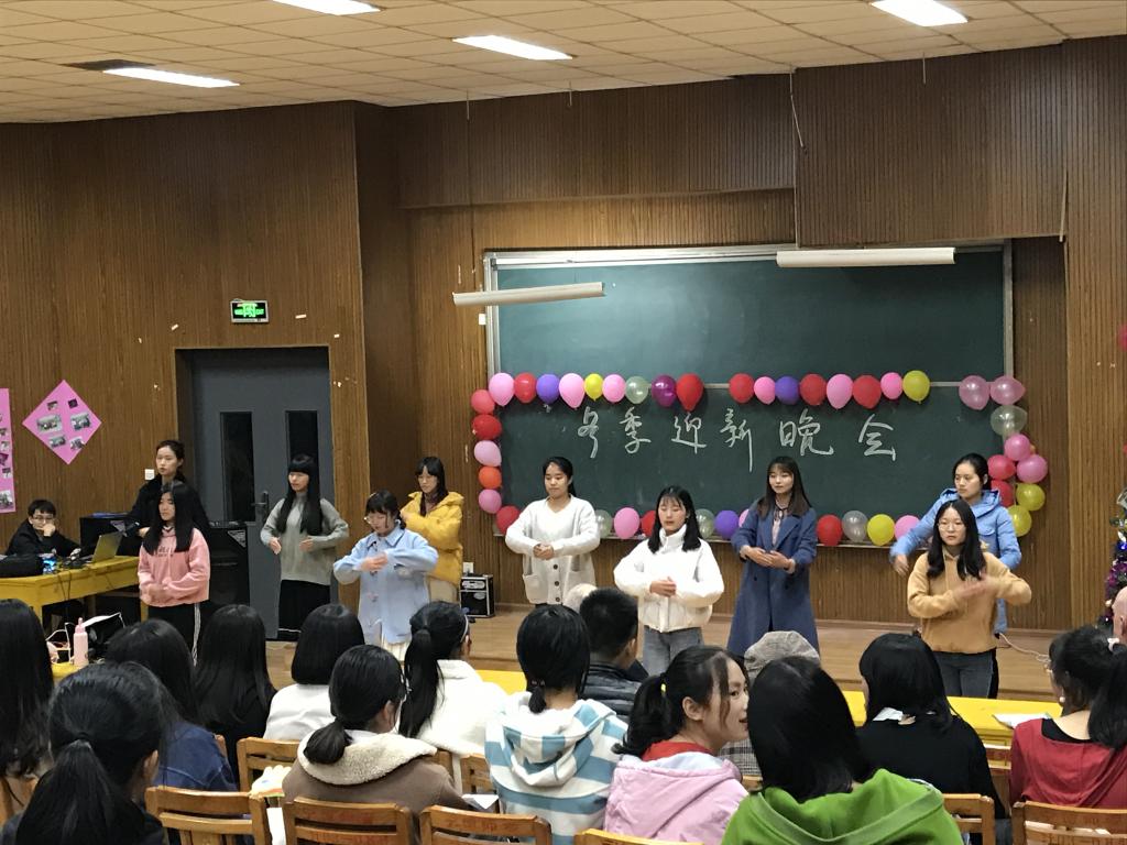 别开生面的冬季迎新晚会让在场观众兴奋不已。在寒风瑟瑟的夜晚,温暖的307教室让同学们兴致高涨。现场充满了欢乐的气息。开场由宣传部几位男生带来舞蹈串烧《东西》+《失恋战线联盟》,他们搞笑的舞姿惹得观众哈哈大笑,一下将场面推上了高潮。而舞蹈《我怎么这么好看》与《latata》更是让观众耳目一新,赞叹不已。最近热门歌曲串烧的手势舞也在活动中闪亮登场。紧接着财务部带来的歌曲《crazy》带动了全场的气氛,其动感的旋律嗨翻了全场。随后吉他弹唱《南山南》和歌曲《白羊》,歌手们动人抒情地唱完了整首歌,令台下的观众为之动容。由采编部带来的歌曲串烧《青春赞歌》,让观众感受到了身为大学生无限的青春活力。情景剧《情深深雨蒙蒙之雪姨敲门》带观众回到了小时候重温经典。小品《考试作弊》中同学们的滑稽表现和父亲让人摸不着头脑的举动引得现场观众欢笑不断,而最后,孩子的一句:“考试看的不是成绩,而是看你有多大能力”更是令人深思。当背景音乐《Blank Space》响起时,一个接一个夺人眼球的模特走出来了。原来是走秀!尽管没有专业的训练,没有华丽的服装,但仍然能给观众带来不一样的视觉盛宴!最后的英语话剧《love story》,白雪公主与王子,Jack和Rose等故事,完美的诠释了人间的爱。