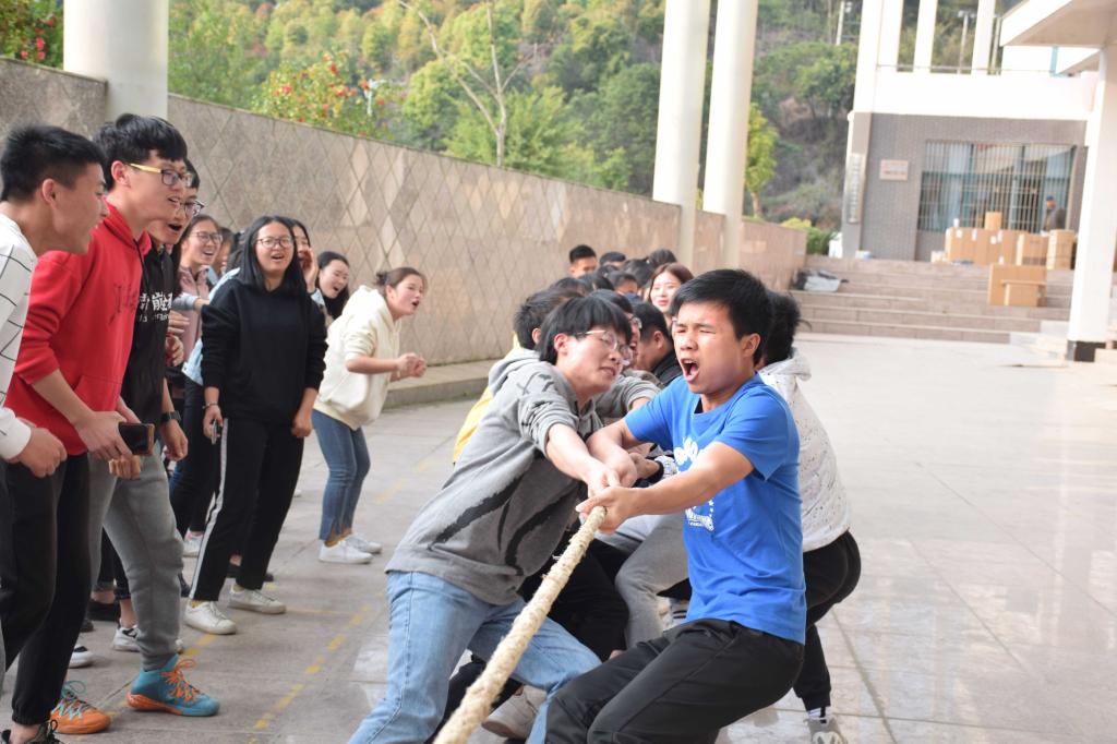 游戏共分为四轮,第一轮游戏叫做“直呼其名”,队员们以小组为单位站成一圈,游戏从任意一名组员开始,大声喊出自己的名字和部门,然后这名组员左边的人要先喊出上一人的名字和部门,再如法炮制,一直持续下去,直到所有人都轮流到一次,用时最短的获胜。最后,第一组以仅用20秒的成绩,在第一轮游戏中先拔头筹。比赛愈渐激烈,在第二轮比赛中,每组选出12人,站成一列,组员用嘴刁着一次性塑料杯,在每列的第一名成员的杯子中倒入足量的水,然后将水向后传送,在这个过程中,除了嘴以外,不能用身体的任意部分触碰杯子,用时最短,并且杯子中剩下最多水的小组获胜。在比赛过程中,大家争先恐后,状况百出,最终,第一组再次以最快的速度和杯中剩下最多的水获胜。在第三轮“穿越火线”的比赛中,两两组进行比拼,每一组的成员们利用自己的奇思妙想,将绳子摆造成任意形状,给自己的对手加大通行的难度,最快并且碰到绳子次数最少的才能赢得胜利。在这一轮比赛中,第七组傲视群雄。最后一轮的拔河比赛,将本次活动推向了高潮。在比赛开始前,经过抽签,将八个组分为两队,每队选出25个人进行拔河比赛,其余人呐喊助威。最后在加油声中,经过激烈的比拼,由第一、五、七、八组组成的2队以二比一的成绩获得了胜利。