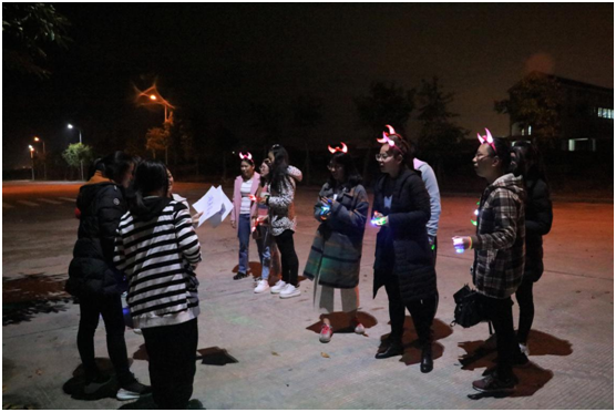本次夜跑设置有闯关活动,参赛者跟着领跑员从求知楼出发,途经办公楼到达校门口进行关卡一“背对背拥抱”活动,随后路过讲堂群绕过实验楼到达体育馆进行关卡二“你比我猜”活动,最后经篮球场到达食堂进行最后的关卡“左右手傻傻分不清楚”活动。一个个妙趣横生的游戏,调动起了大家的热情,也让大家体会到团队协作的意义。