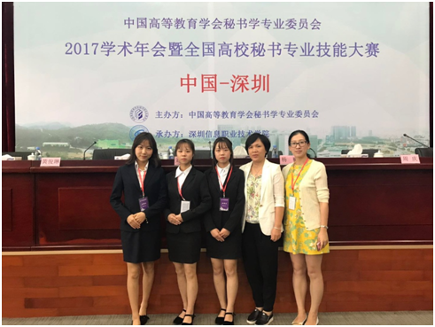 11月4日至6日,由中国高等教育学会秘书学专业委员会主办的2017年全国高等教育学会秘书专业委员会学术年会暨全国秘书专业技能大赛在深圳举行。我院2015级汉语言文学专业学生李婵、李娟、宋子菁在陈今、郑小莲两位老师的指导下参加了技能大赛,并取得了团体二等奖的佳绩,李娟同学还斩获了本科组理论知识单项的一等奖。