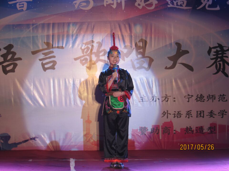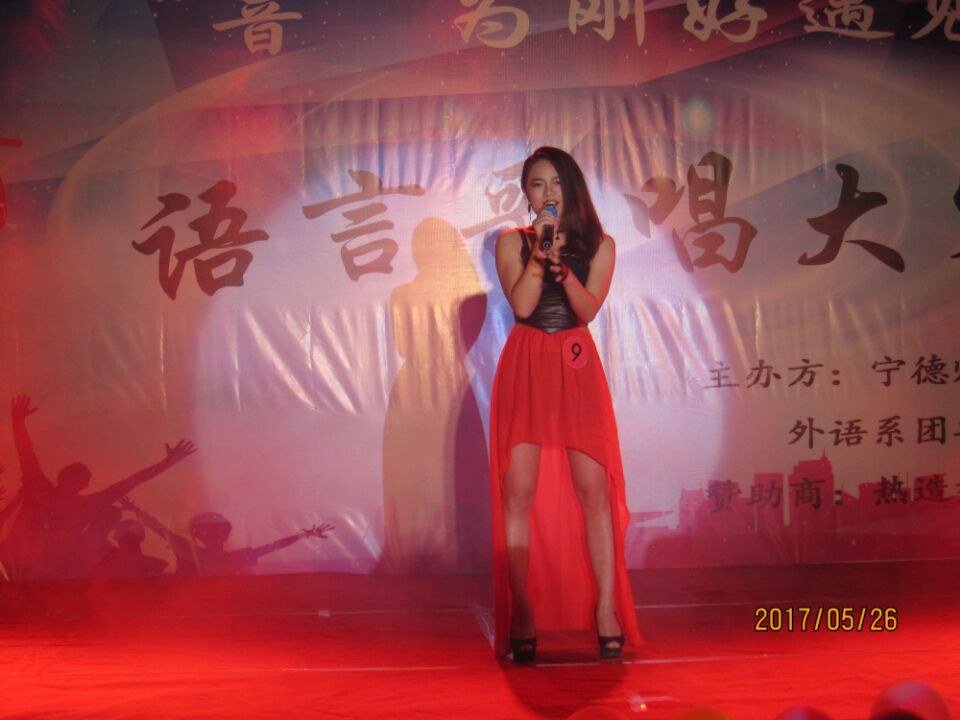 5月26日晚7点,语言歌唱大赛决赛在学生宿舍二号楼前如期举办。语言与文化学院院长龚帆元、副书记龚劲丹、教学秘书陈经纬、辅导员王晓莹、外教Mike和Andy出席了比赛并担任评委,比赛现场吸引了全校各系同学观看。参赛曲目除汉语外还包含了英语、韩语、意大利语、日语、粤语、闽南语等多种语言,其中少数民族语言(畲族)歌曲格外引人注目,在场的观众享受到了一场多语言音乐的盛宴。