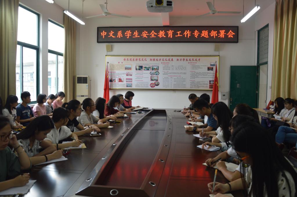 5月11日下午,汉语言文学系召开全系学生安全教育工作专题部署会。系党总支副书记张晓芳、副主任李颖伦、系办公室主任缪良景,系团委负责人、辅导员、团委学生会全体干部和各班班长50多人参加了会议。