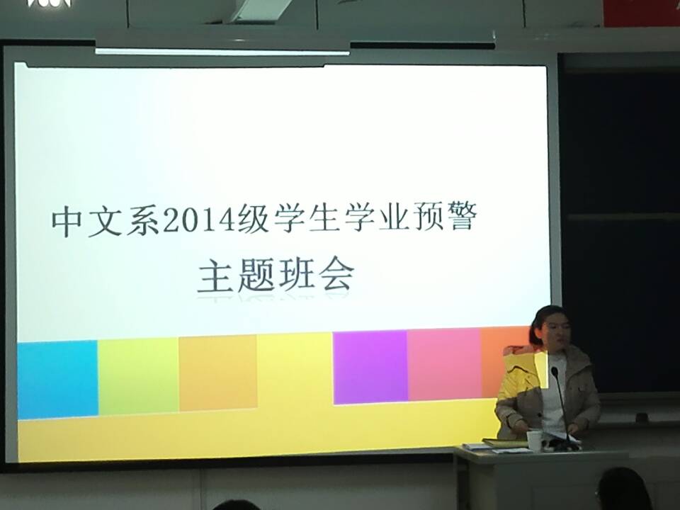 3月6日,2014级辅导员祁燕苹在东侨校区求真楼C区201教室举行汉语言文学系2014级学生学业预警主题班会。