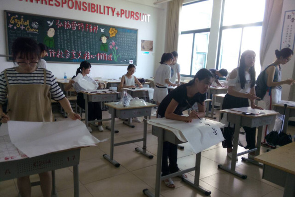 为了提高学生的道德修养、文明素质和专业技能,促进学校良好学风的形成,立足培养学生对书法的兴趣,全面挖掘学生艺术潜质,丰富校园文化生活。2016年5月28日下午2点30分,由英语系主办的三笔字大赛分别在AA201和AA203教室举办。此次活动以传承传统文化为宗旨。