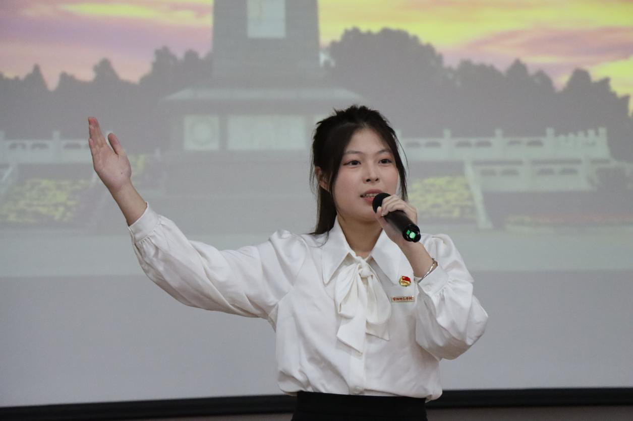 我院学子以多样形式参与红色表达,成为活动一大亮点。学生代表苏婧雯聚焦闽东抗战烈士黄家祥弃优渥生活赴国难的壮举,深情讲述其爱国事迹,真挚情感引发全场师生强烈共鸣;谢美娜同学现场诵读诗歌《不朽》,激昂语调中饱含对革命先烈的追思与敬仰,与事迹分享形成情感呼应,充分展现了我院学子传承红色基因的青春担当。