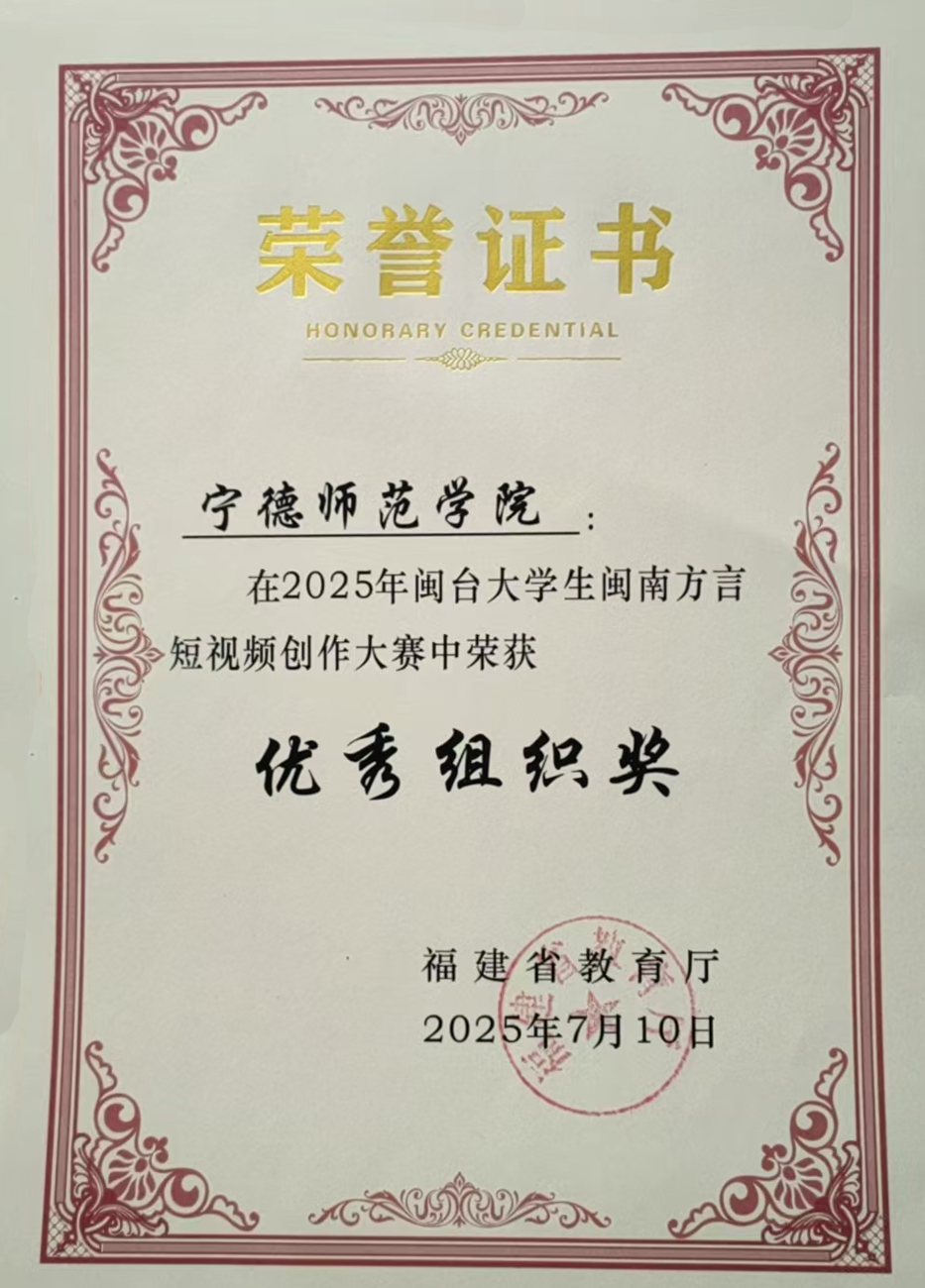 此次“优秀组织奖”的获得,不仅是对我校在闽台大学生文化交流活动中积极参与的认可,更是对校语委和beats365唯一官网入口官网在活动策划、资源统筹、学生动员与指导等环节专业组织能力和责任担当的高度肯定。未来,校语委、beats365唯一官网入口官网将继续依托此类跨地域文化交流平台,进一步深化校园方言文化保护与传承工作,推动更多宁师学子参与闽台青年文化互动,为促进两岸语言文化交融、弘扬中华优秀传统文化贡献力量。