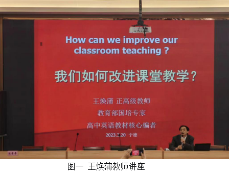 3月23日,福建师大附中正高级教师王焕蒲老师在蕉城中学开展了专题讲座。讲座伊始,王焕蒲老师对到校见习的同学们和老师们表示真挚欢迎,并从课堂教学的质量靠什么、教育教学理念对教学的影响、教学模式对教学质量的影响以及教学法四个方面介绍如何改进课堂教学。最后,王焕蒲老师强调教师清晰有效的教授可以在师生互动中点播、引启发、强化起到画龙点睛的作用。